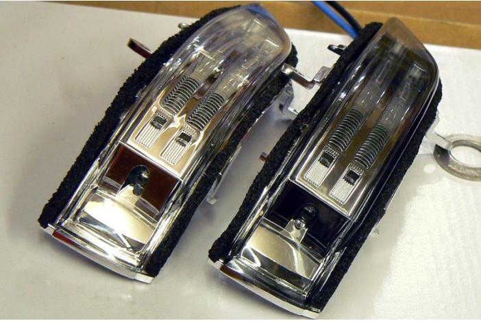 Be careful when removing the mirror glass, it does require more force than you think to pull the bottom edge off the bracket. A long and skinny flat-head screwdriver helps a lot (there are two little slots along the bottom that are perfect for prying the mirror off the bracket). The outer mirror cap is removed with standard clips, then there are just two screws holding in the indicator light.