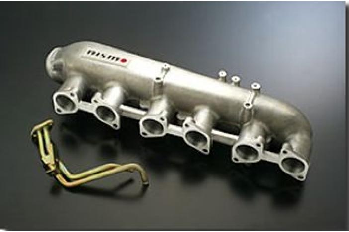 To find the most suitable shape for tuning engines (400ps to 600ps), the diameter and the length of the intake pipe, and the cross section shape of the intake collector was redesigned. The distribution of air to each tube was improved to provide more equal airflow volume, improving torque in the mid-speed range. Improved air intake volume between the pipes of the front and rear sides reduces the difference in air intake temperature on both sides of the turbine, optimizing the air-fuel ratio and ignition timing and providing increased output and fuel consumption. Simple bolt-on installation means that no additional work is required (however, the throttle linkage and throttle sensor must be adjusted).
