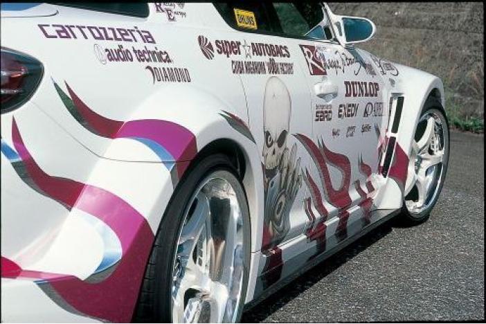 Material: FRP. 100mm wider. Front bumper spoiler + Carbon lip spoiler + Front fender pair + Carbon side step + Rear quarter + Rear bumper spoiler. GT wing shown in the images is not included.