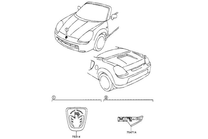Japanese MR badge for the front bumper. Looks a lot more exotic than the usual Toyota emblem.