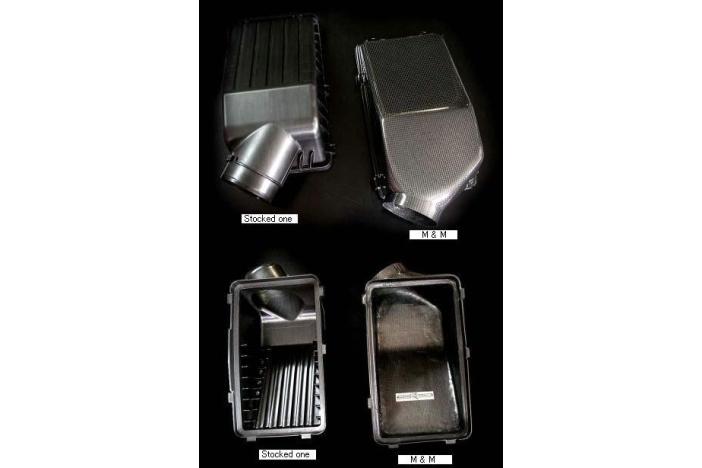 Material: Carbon. This largely changes it of shape of air BOX and improves a flow of the intake and plans speed, flow quantity up. Recommend the sports cleaner (374-001-002) and Aero intake duct (374-001-003) to be installed together.