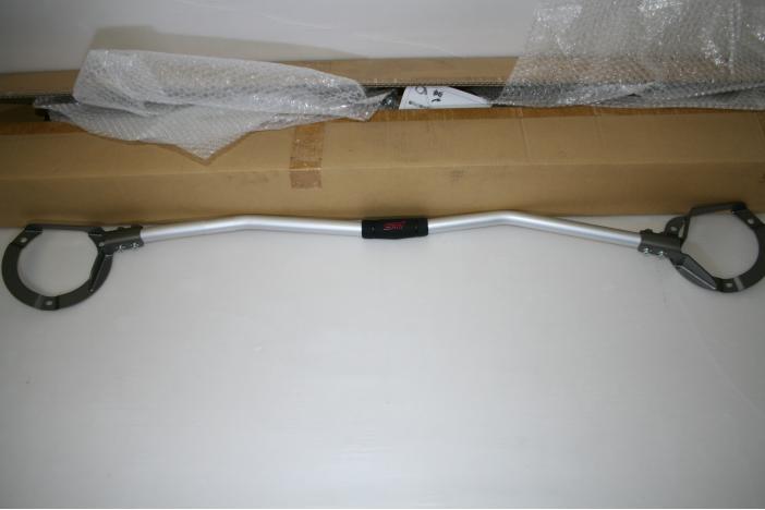 Just remove the strut fixing nuts, slide the strut bar over the studs then refit the nuts and torque to spec.