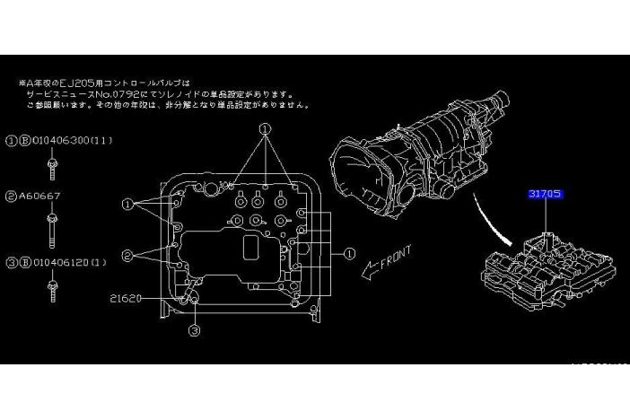 Only for EJ205/ AT. It includes 3 blue connectors, 3 brown connectors, 11 bolts for plate, 3 bolts for strainer and O ring. Please advice the vehicle chassis number before making an order.