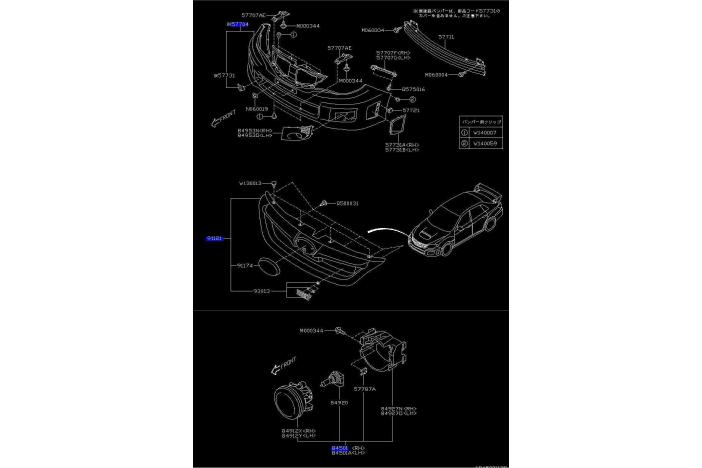 Sti applied model C use. A set of Bumper Face, Front un-painted (57704 which is 317-053-001), Cover, Fog Light (84953N+84953O which is 317-053-002), Cover, Front Bumper (57731A+57731B which is 317-053-003) x2, Front Grille Assy (91121 which is 317-053-004) and Foglights (84501+84501A which is 317-053-005). Please choose the color of Cover, Fog Light and Cover, Front Bumper (front bumper must be unpainted as painted has been discontinued).