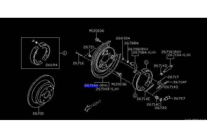 Comes with M120036 x4. For SG9 Sti or GDB/C-G except Spec C 16inch wheel without ABS models. Price is for one side so please choose it for RH(26704A) or LH(26704B).