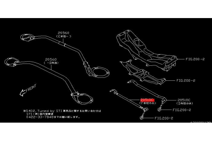 - Without front support arms; use flange bolts short to secure flexible lower arm bar with cross member support plate (tighten to 60Nm (6.0Kg f-m) using 14mm socket wrench and torque wrench)