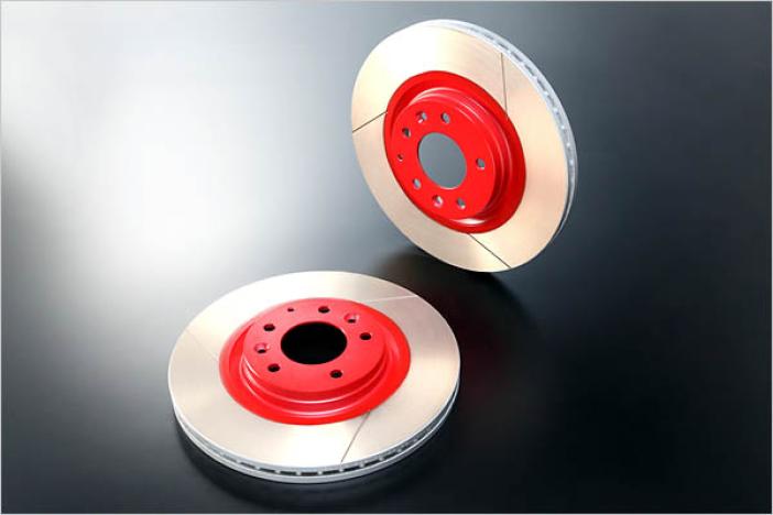 Pair price. Incorporates the same one-piece structure as the genuine rotor but contains additional materials such as carbon and silicon, thus increasing fade resistance and crack resistance by providing better heat treatment. Also maintains the face that contacts the brake pad in better condition, limits the necessary number of cleaning slits that hasten pad wear to three per side, and enables positive rotation in delivering well-balanced performance, especially for street driving. We recommend this too as an upgrade when replacing the genuine rotor. Pair price. Please choose it for OEM 18inch equip model or 17/16inch equip model. Shown photo is DE Demio one.