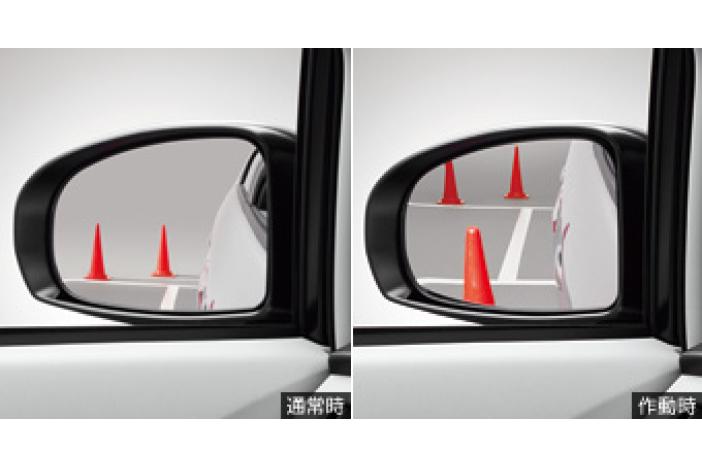 mirror show lower to show near rear tire when gear put R. It goes back automatically when gear is NOT R. It does NOT fit with Welcome light, multi angle monitor and side monitor system equip model.