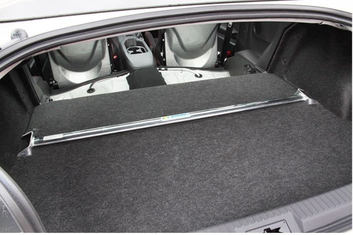 Rear Strut tower bar TypeI. Material: Aluminum, polished finish.