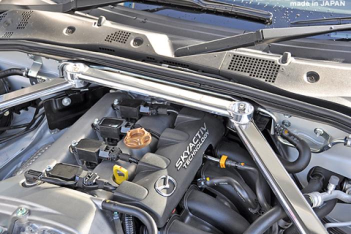 3 points Aluminum Oval pipe. Bolt on. If the vehicle does not have the optional tower bar, it needs genuine air cowl panel (N244-56-35X) to install. Unconfirmed about the fitment onto induction sound enhancer equipped model.