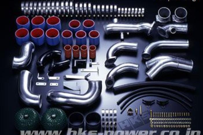 Stock plastic or rubber intercooler pipes can expand or crack under high boost levels. In addition to this, stock pipes have many bends which in some places are very tight radius which causes much resistance and pressure drop. HKS Piping kits are made of aluminum for increased durability and safety. The pipes have been redesigned to decrease the number of bends and to increase bend radius to minimize pressure loss and flow resistance.