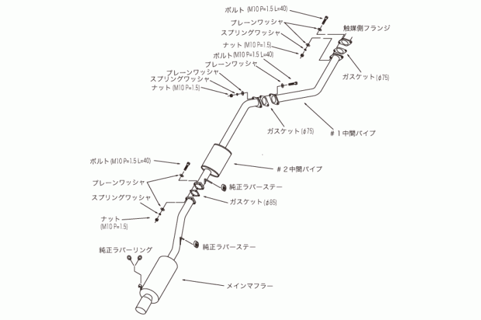 - The material of main silencer and tip is SUS304. Pipe portion, which is difficult to see are made of SUH409. This combination enables good appearance and high cost performance.
