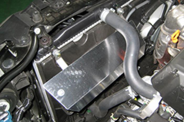 -Bold white HKS logo printed on black anodized back plate accentuates the engine bay!