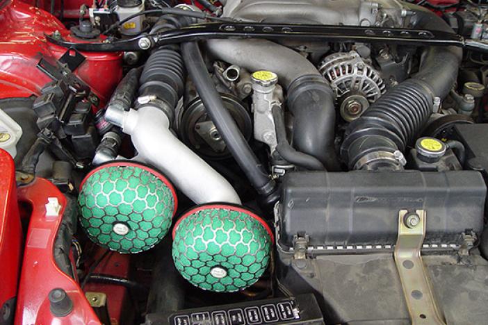 Ambient exposure type air clearner has larger area of induction inlet that increases intake air volume. Engine horsepower and torque become higher than a stock repiacement type.