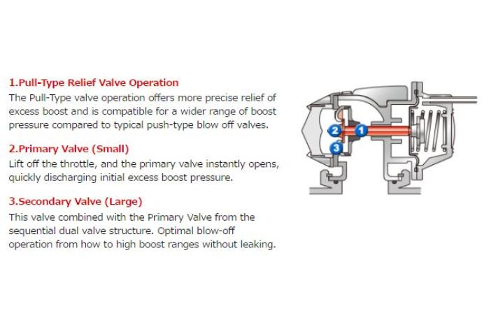 HKS Super SQV (Sequential Blow Off Valve) uses a unique sequential valve structure and a differential pressure control system, which allows for a broad operating range from low boost to high boost. Its Pull-Type relief design ensures stable operation regardless of the amount of boost pressure. The Super SQV will support new generations of turbocharged vehicles.