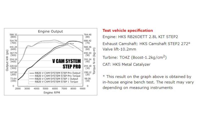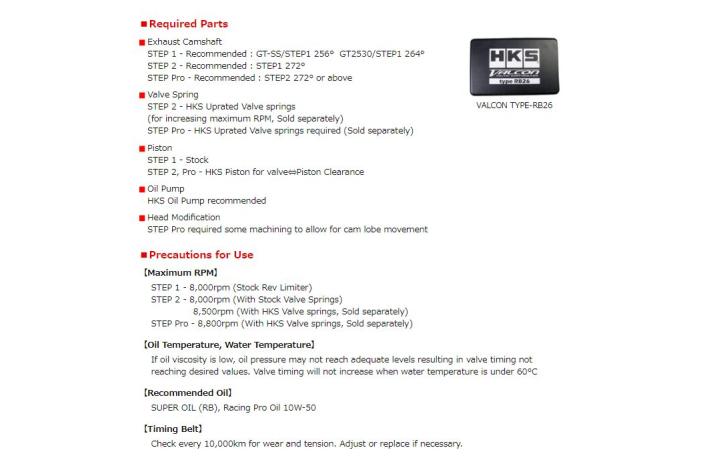With "VALCON type RB26". Machining hollow camshaft, Variance 50°, HKS Forged Pistons Required.