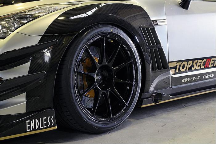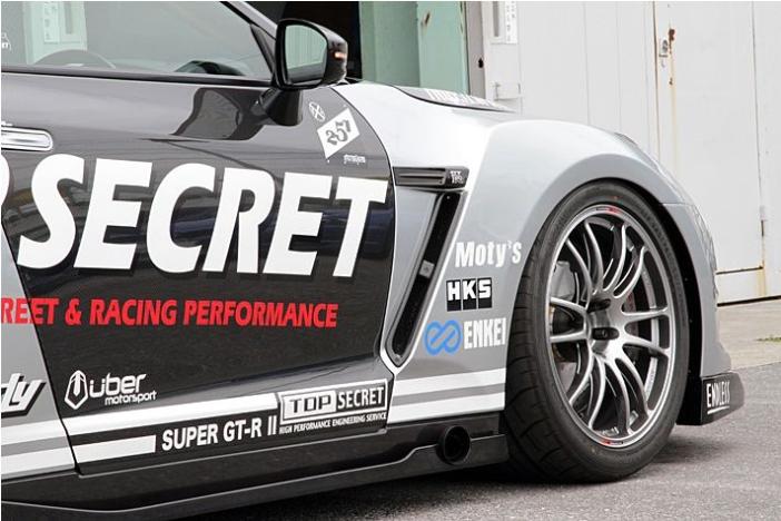 The front wide fenders are 20mm wider on each side. A special extension panel on the side of the front bumper is included to eliminate the gap between the fender and the front bumper and a special liner is also included to compensate for the lack of coverage of the factory inner fenders due to the widening. Type 1 is applicable for Top Secret Full Bumper Kit Ver.1/Ver.2 and MY2008-MY2010 Nissan OE Front Bumper. The images show either FRP or Carbon version.