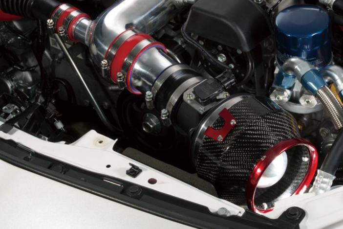 - Dress up the engine room with a combination of carbon shield and red alumite.