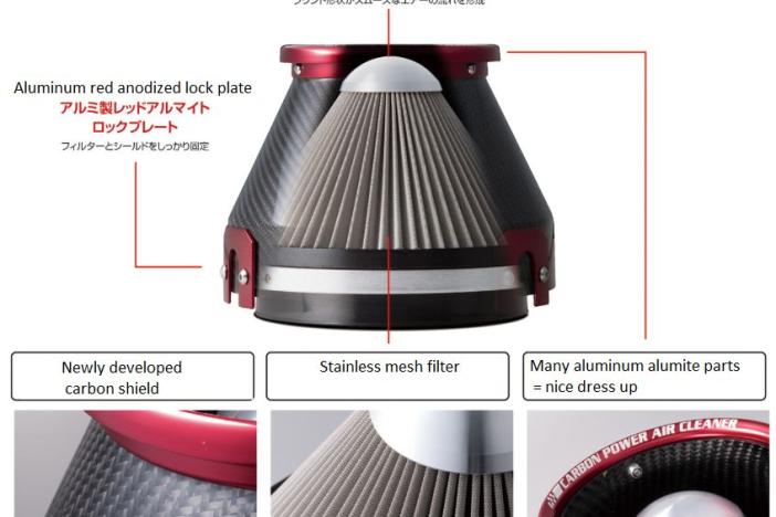 - The carbon shield with the large diameter funnel blocks the radiant heat and prevents the heat generation of the filter main body, and reduces the intake air temperature rise.