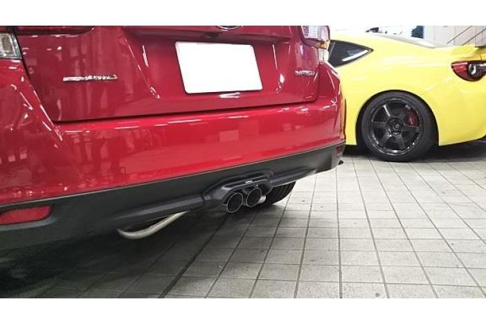 Tail pipe diameter: 70mm. Need to cut rear bumper to install. Comes with needed garnish(with STi ornament), flange bolts, self lock nuts, gasket to install. Can't install with rear bumper panel