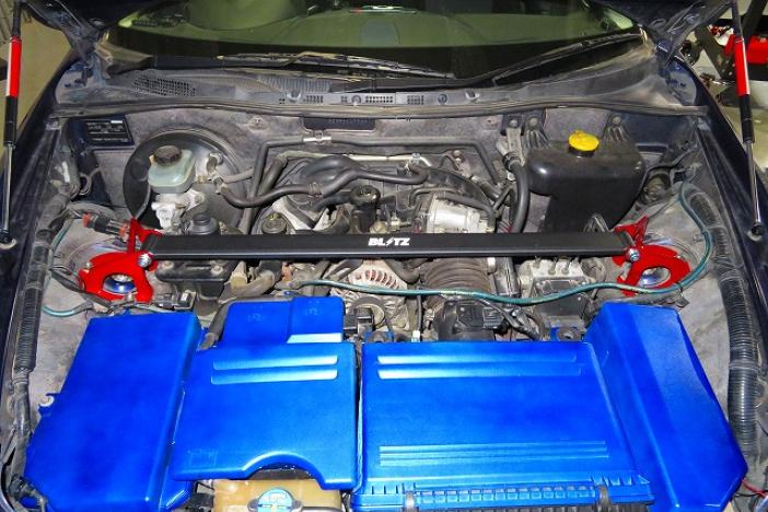 Improve your cars handling with the new Blitz strut tower brace.