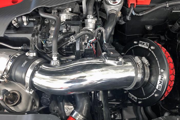 - Improving the suction efficiency by changing the genuine flexible rubber hose to aluminum piping. In HKS flow bench test, the suction resistance has been reduced compared to stock intake system.