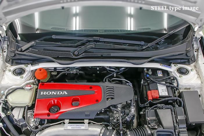 The strut tower bar reduces twisting of the body and improves handling and stability. Standard item for body reinforcement. The suspension´s behavior is stabilized by connecting the left and right suspension upper mounting parts (strut houses) and suppressing the falling phenomenon of the strut houses.