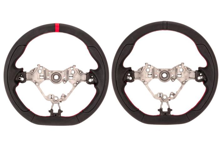 Black NAPPA leather with red stitch. Please choose the color of center mark. Horn button and switch are not included. Heating function on OEM steering wheel will be disabled.