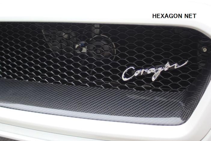 Carbon and FRP (unpainted). Comes with CORAZON emblem. Not compatible with Front View Camera. Please choose the type of net. Part number: CZ-VAD-FGCX (HEXAGON), CZ-VAD-FGC (DIAMOND)