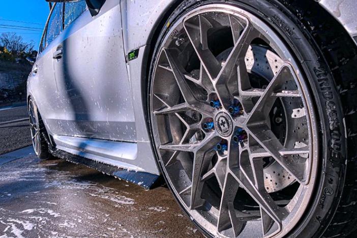 Includes: Front Bumper Spoiler (FRP) with LED daylight, Splitter for Front Bumper Spoiler (CARBON), Side Skirt Extension (CARBON), 3-Piece Duck Wing Spoiler (CARBON), Rear Bumper Spoiler (FRP) and Vertical Fin for Rear Bumper Spoiler (CARBON). FRP part is unpainted. Carbon part is clear-painted.