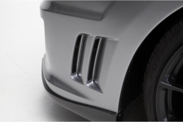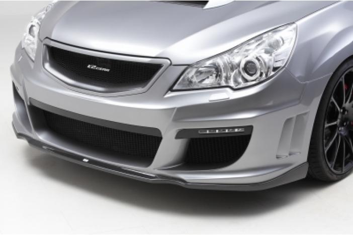 Material: FRP with black gel coating finish. Subaru Genuine grille, K2 gear lip spoiler and/or STi S-package front under spoiler are possible to use with this bumper. Fog lamp attachment isn't included (extra 25000JPY). Might need some work (extra Subaru Genuine parts and so on) as it's made for S-package model.