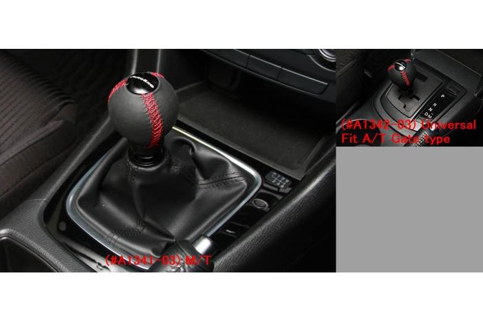 Real leather with black alumite finish aluminum plate Auto Exe logo. M/T: M10x1.25, A/T: M8x1.25. Diameter: 51mm. Length: 70-88(M/T), 70-80(A/T)mm. Weight: 190g. As for M/T, it comes with shift pattarn emblem (both 6M/T and 5M/T). Please choose the model from (#A1341-03) M/T or (#A1342-03) Universal Fit A/T Gate type (must double check the model if you own straight type model or gate type model).