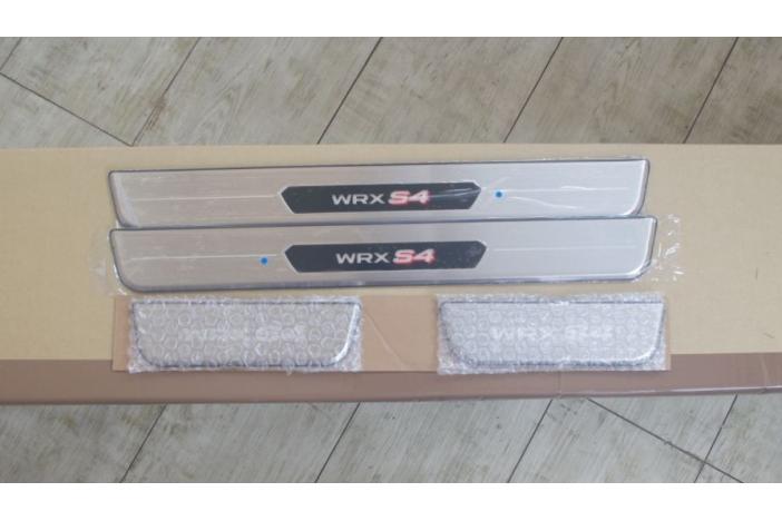 Material: Stainless. A set of front pair + rear pair. WRX S4 logo light on 30 seconds once door opens (ONLY front, rear does NOT light up). It need CR2430 battery x2 but it's NOT included. E1017VC220