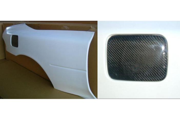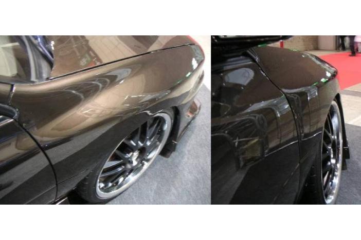 Front 30mm plus on each side. FRP unpainted. For rear, to install wide wheel, OEM fender (arch part) must be processed. Compatible with OEM rear bumper.