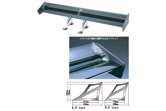 Angle adjustable. Kit contents: Wing, Wing end tips (M size) & bolts, Wing fixation blocks & bolts, 1set of wing attachment bracket, 1set of adjustment brackets & bolts, Attachment bolt on trunk, Trunk bases, Trunk base rubbers, Washers, Nuts, Assemble tool. Bracket height: 152cm. Please choose the type from the picture. Does NOT fit onto FRP or Carbon Trunk.