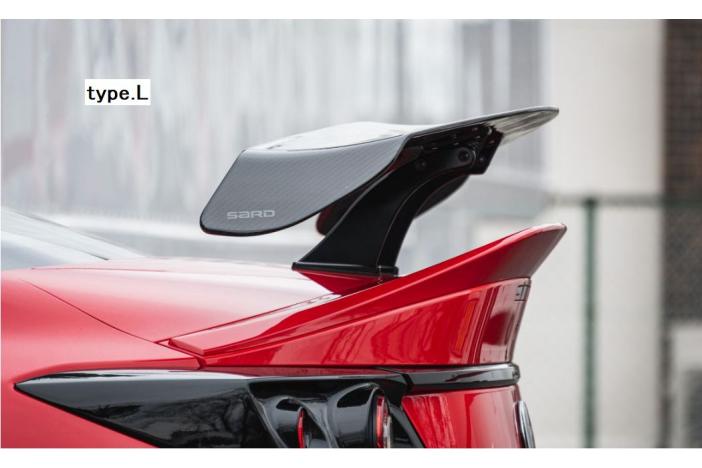 Wing: 1390mm in width. Carbon with weather-resistant urethane paint. Type.L is compatible with GR Trunk Spoiler. Please select: LOW stay (81093), MID stay (81095) or MID type.L (81105).