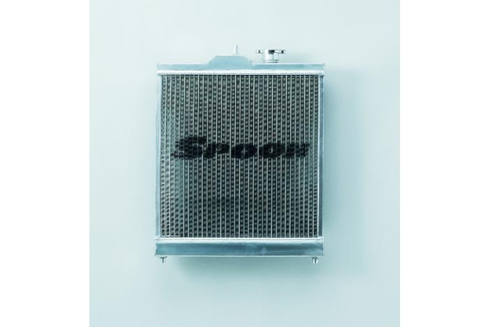 2 layer all aluminum. It can use with stock air conditioner. Comes with Spoon radiator cap. Exact same style as OEM radiator but core pressure is 35mm (OEM 10mm) so cooling effect is abou40% up. Show use with Spoon thermo switch and thermostat. Please also use with SEP radiator hose. Please choose the model. Shown photo is for EK9.